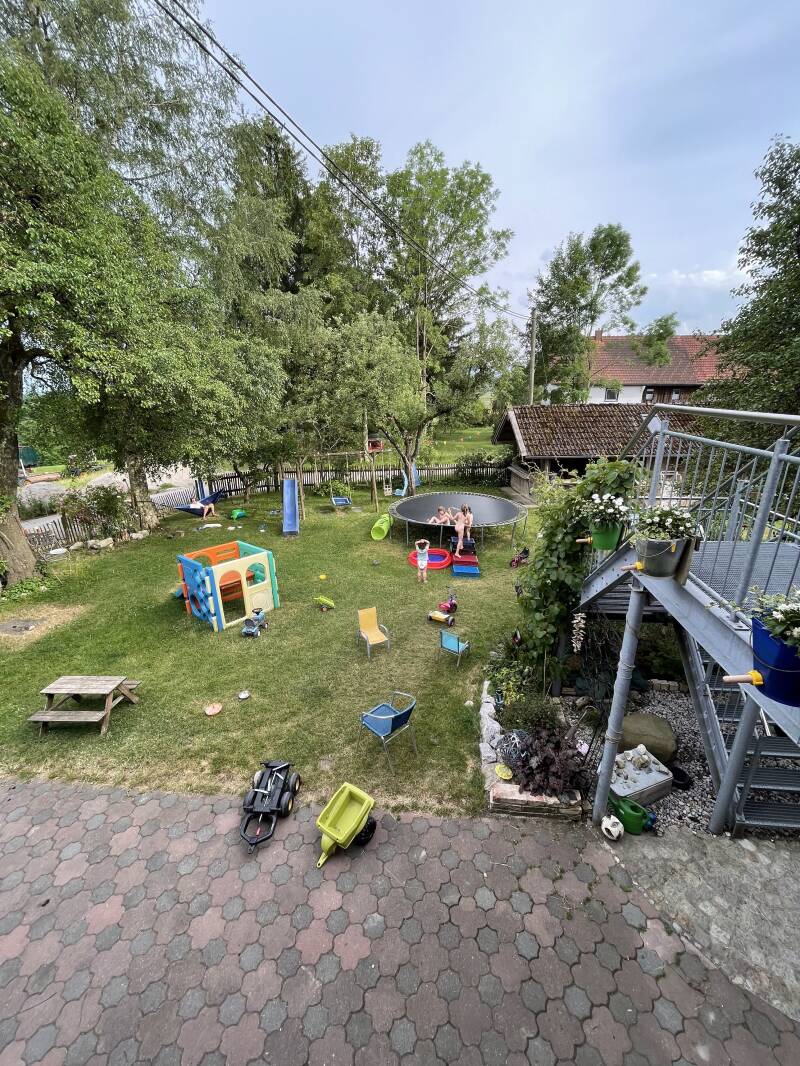 Wir haben dort eine Ferienwohnung gebucht, die integriert im Bauernhof platziert war, aber dennoch privat und ruhig lag. Der Bauernhof war einer mit biologischer Milchproduktion und die, die den Bauernhof haben, haben auch 4 ganz fantastische und soziale Mädels. Außerdem war der Bauernhof und Garten voller Spielsachen, Trampoline, Spieltraktoren, Gocards you name it. Wir konnten C nur schwer in der Wohnung halten, weil sie so gerne draußen spielen und Tiere schauen wollte.